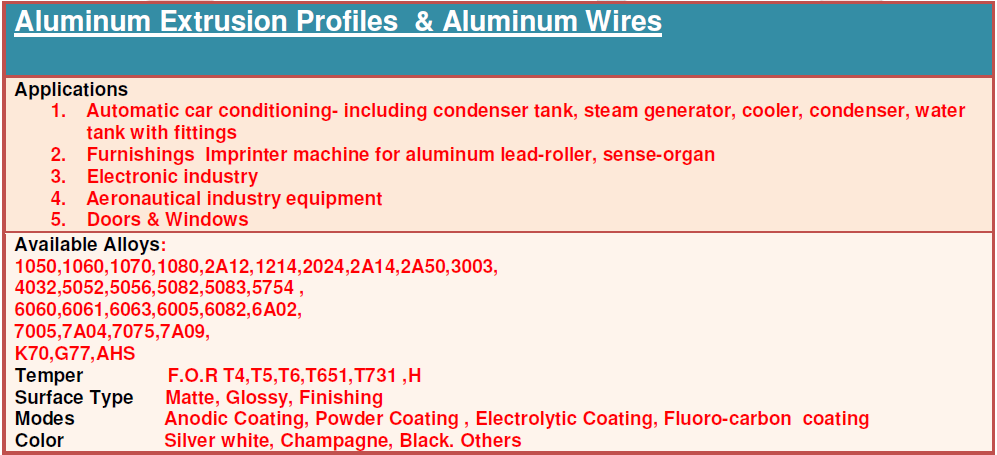 Certified Products, Best Quality, Competitive Pricing , Precision MadeDNV certifiedOrigin 1. China 2. India 3. Turkey Aluminum Profiles & Aluminum Wires 1. For Structures 2. Farm Construction 3. Oil Plant Construction 4. Scaffoldings 5. Others