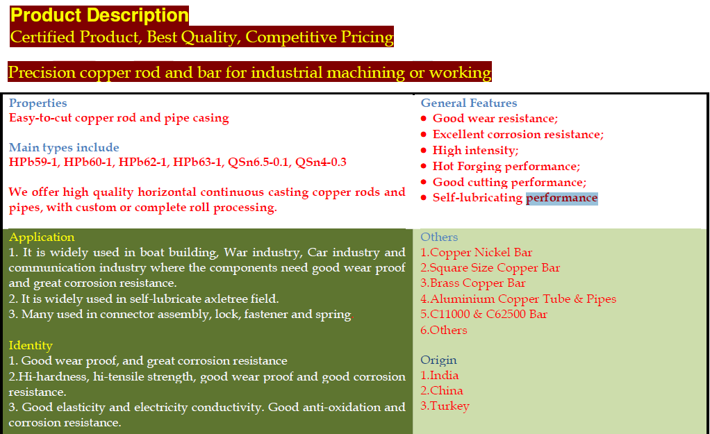 Copper Ingots/Bars/Rods