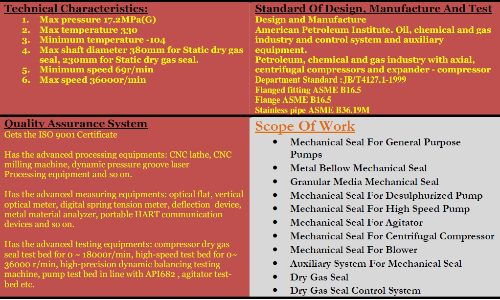 Seals for Pumps, Compressors, Blowers, Heat Exchangers, Agitators