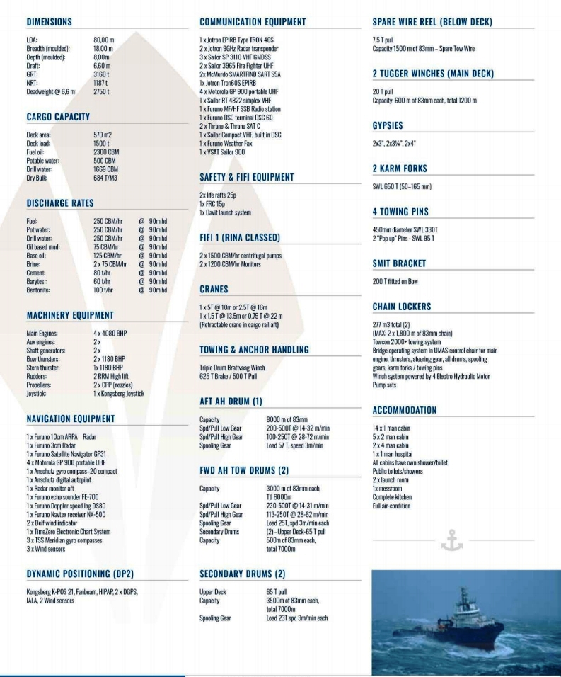 GRT / NT : 3160 / 1187 T
