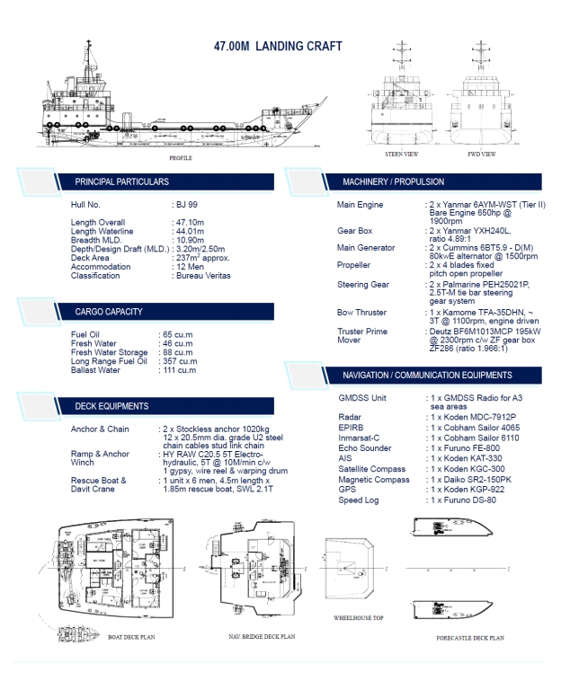 2x NEW BUILT LCT FOR SALE - 47m/68m LOA, 237 SQM DECK AREA, 12 / 14 PERSONS, 1300/2000 HP, SPB, AFT RAMP, SELF PROPELLED