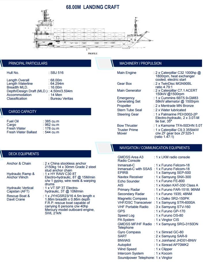 COASTAL DECK CARGO BARGE SPB SELF PROPELLED | LANDING CRAFT LCT SPB SELF PROPELLED BARGE | SPB CARGO BARGE