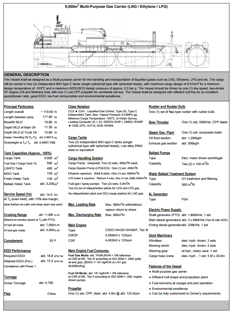 9500 CBM LNG LEG LPG MULTI-PURPOSE GAS CARRIER - NEW BUILDING PROPOSAL