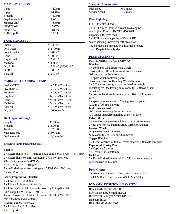 VESSEL ARRANGED FOR AHT-, SUPPLY-, FIFI-, ST.BY & RESCUE DUTIES, ETC