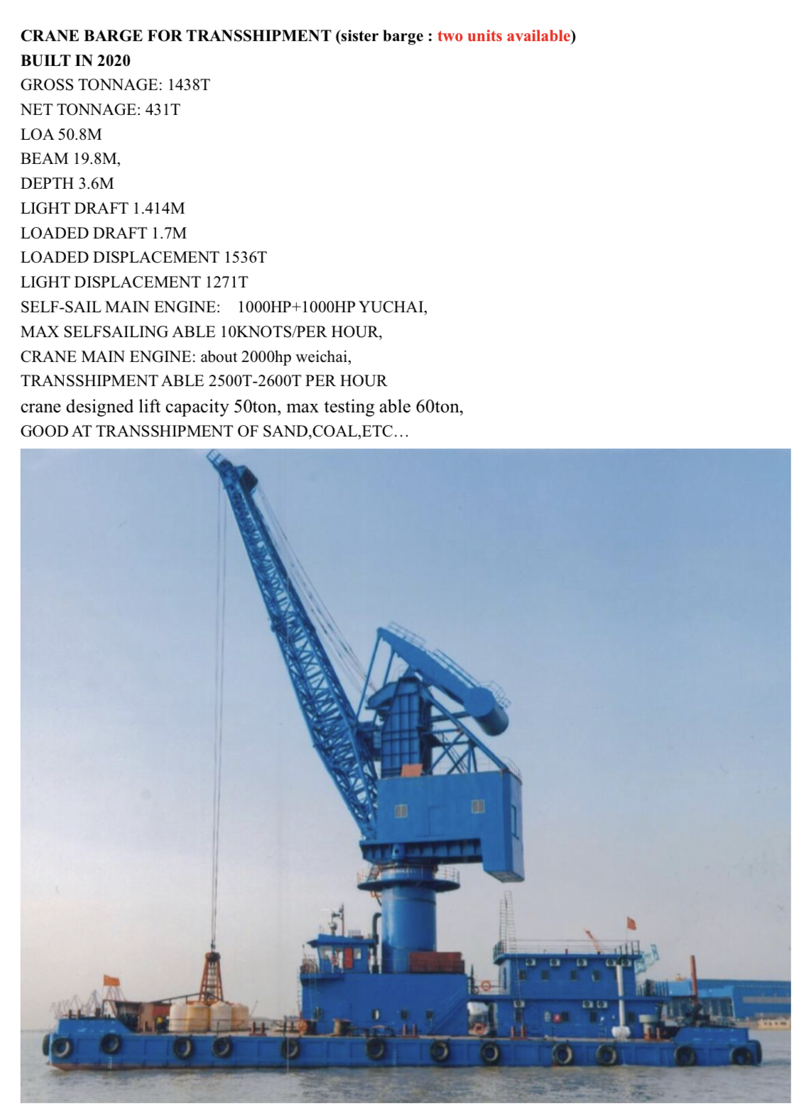 (TRANSSHIPMENT BARGE)