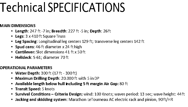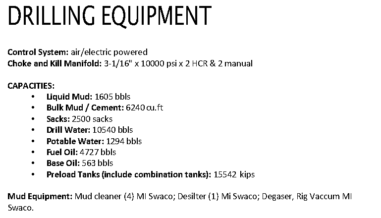 FOR SALE - 410FT LEG , 300FT WATER DEPTH,3 LEGS1976 BLT, 2019 REFURBISHED, 88 PERSONS, HELIDECK - DRILL RIG