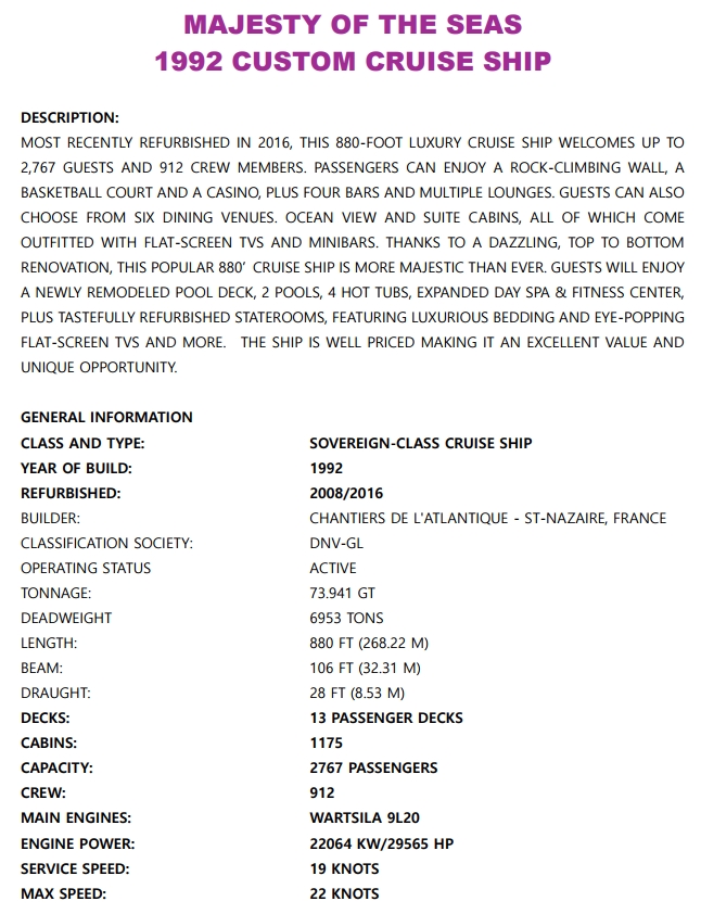 MAJESTY OF THE SEAS1992 CUSTOM CRUISE SHIP