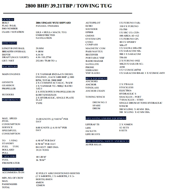 TOWING TUG 2800 HP, 39 T BP, 2004 BLT TUG
