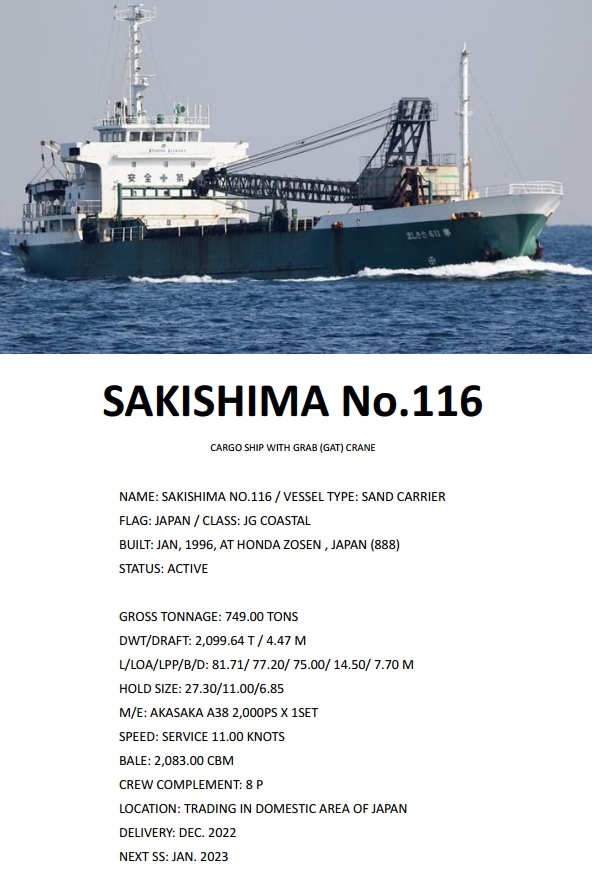 MV SAKISHIMA NO. 116BLT 1996 AT HONDA ZOSEN