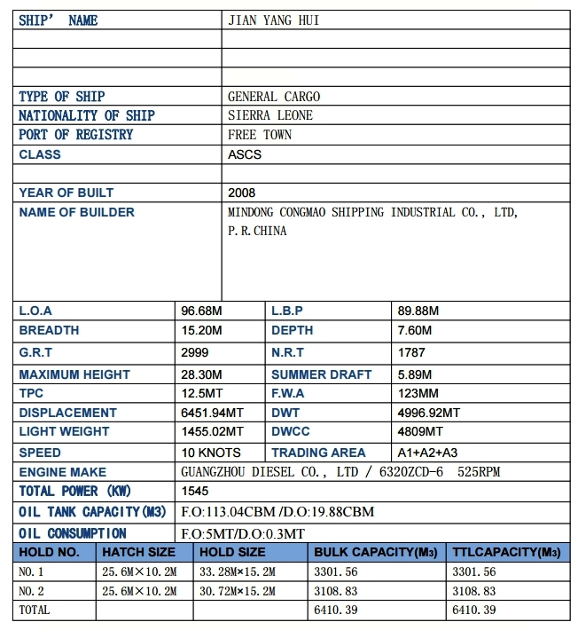 BLT 4/08 MINDONG CONGMAO SHIP INDUSTRY CO LTD - FU'AN FJ, CHR