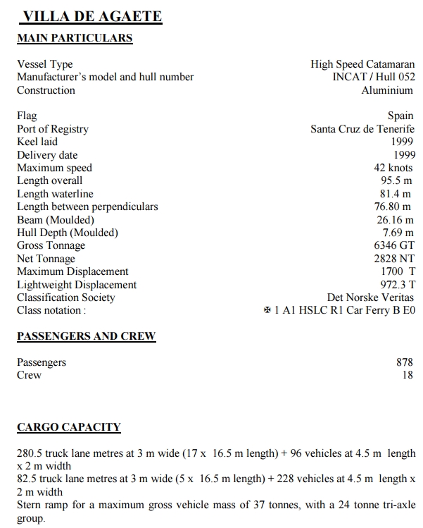 HIGH SPEED ROPAX RORO PASSENGER CATAMARAN FOR SALE – INCAT, ALU HULL, 1999 BLT SPAIN, 42 KNOTS, 878 PAX, HSC, 95.5m LOA, RORO VEHICLE SHIP
