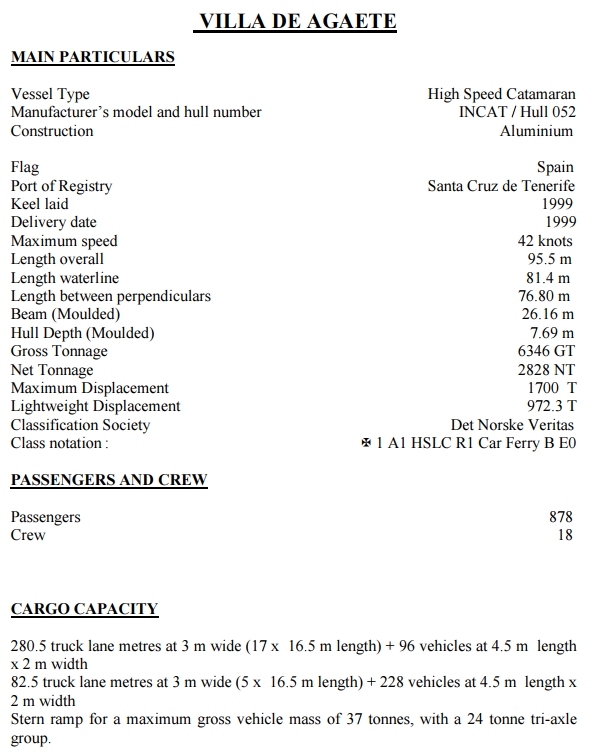 MV VILLA DE AGAETEINCAT HULL 52 BUILT 1999