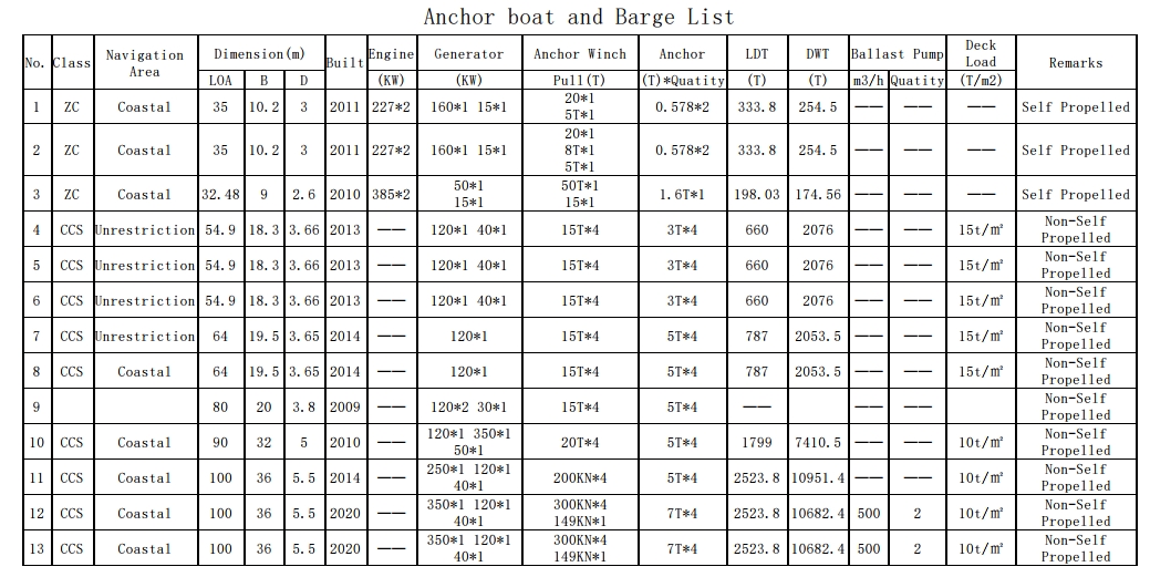 LIST OF BARGES & ANCHOR BOATS FOR SALE