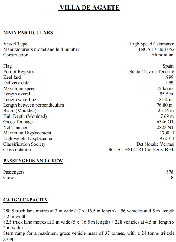 VILLA DE AGAETEHSC INCAT BUILT 1999 - RORO PASSENGER CAR CARRIER