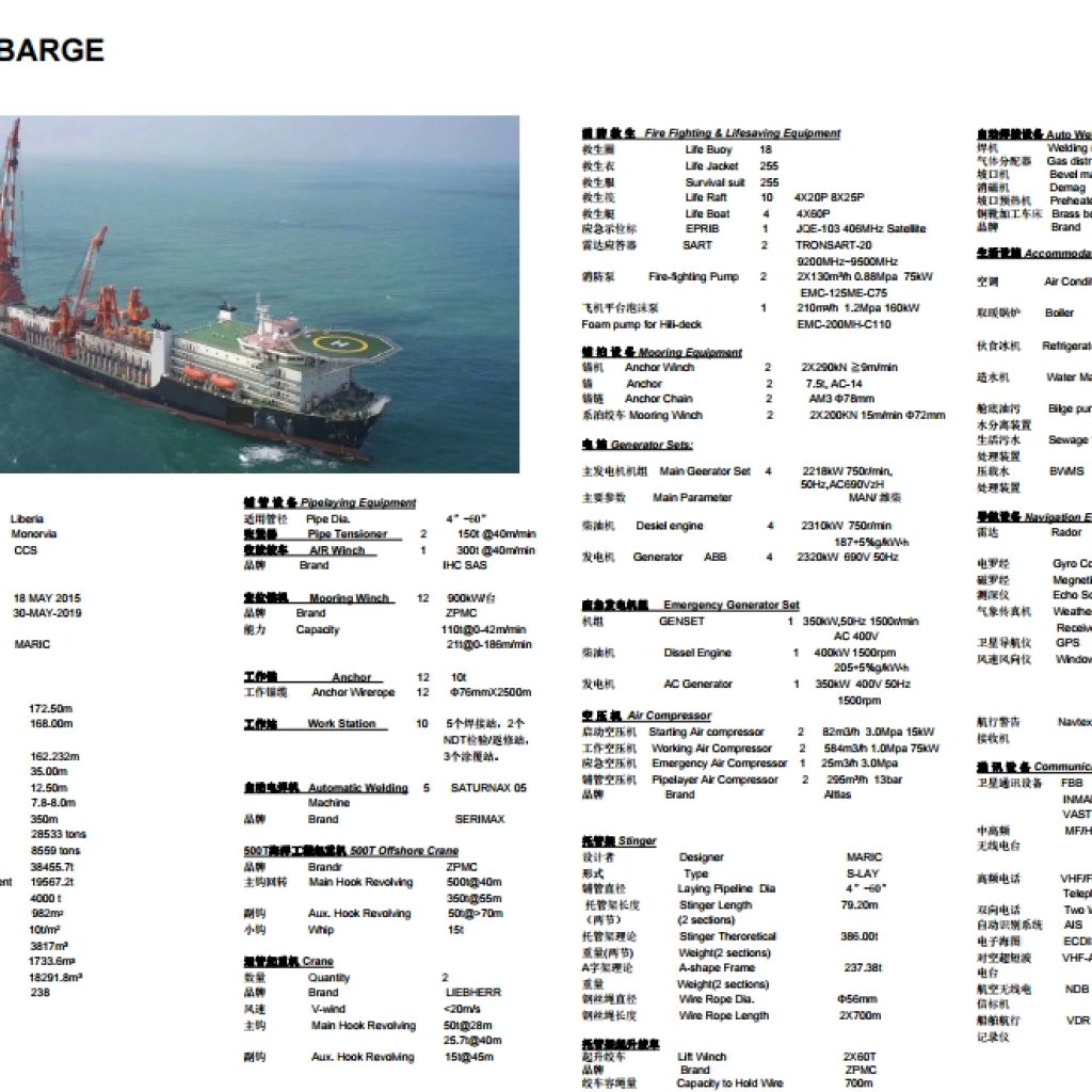 HUI ZHONG 301 - PIPE LAYER CRANE VESSELYEAR OF BUILD: 2019