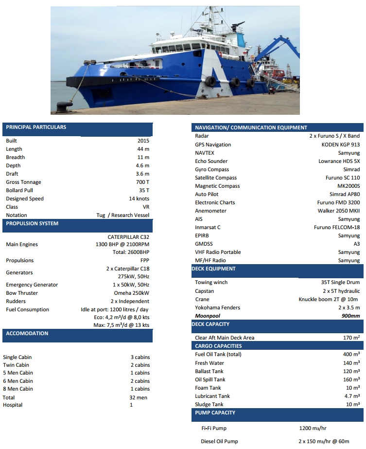 TWIN SCREW TUG BOAT & RESEARCH SHIP FOR SALEBLT 2015